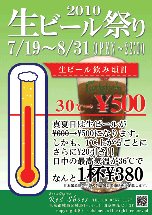 | 2010 生ビール祭り 期間:7/19(月)〜8/31(火) |