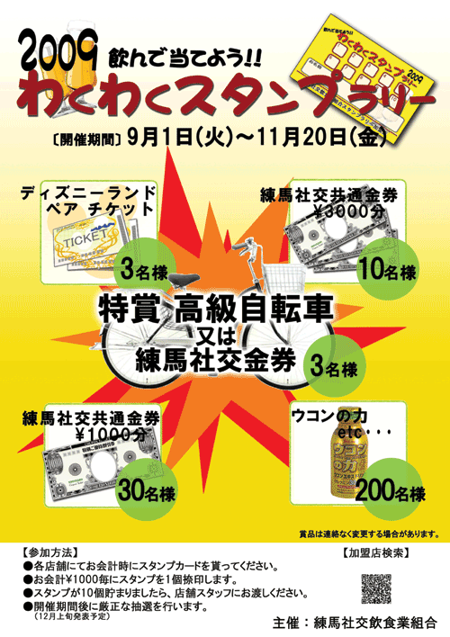 | 2009 わくわくスタンプラリー 期間:9/1(火)〜11/20(金) 抽選日:12/10(木) |